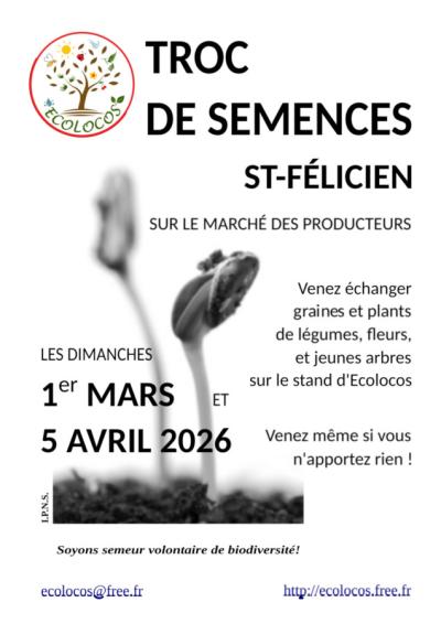 Apportez et / ou venez prendre des graines et plants de fleurs, légumes, jeunes arbres sur le stand d'Ecolocos lors du marché de producteurs de St-Félicien.